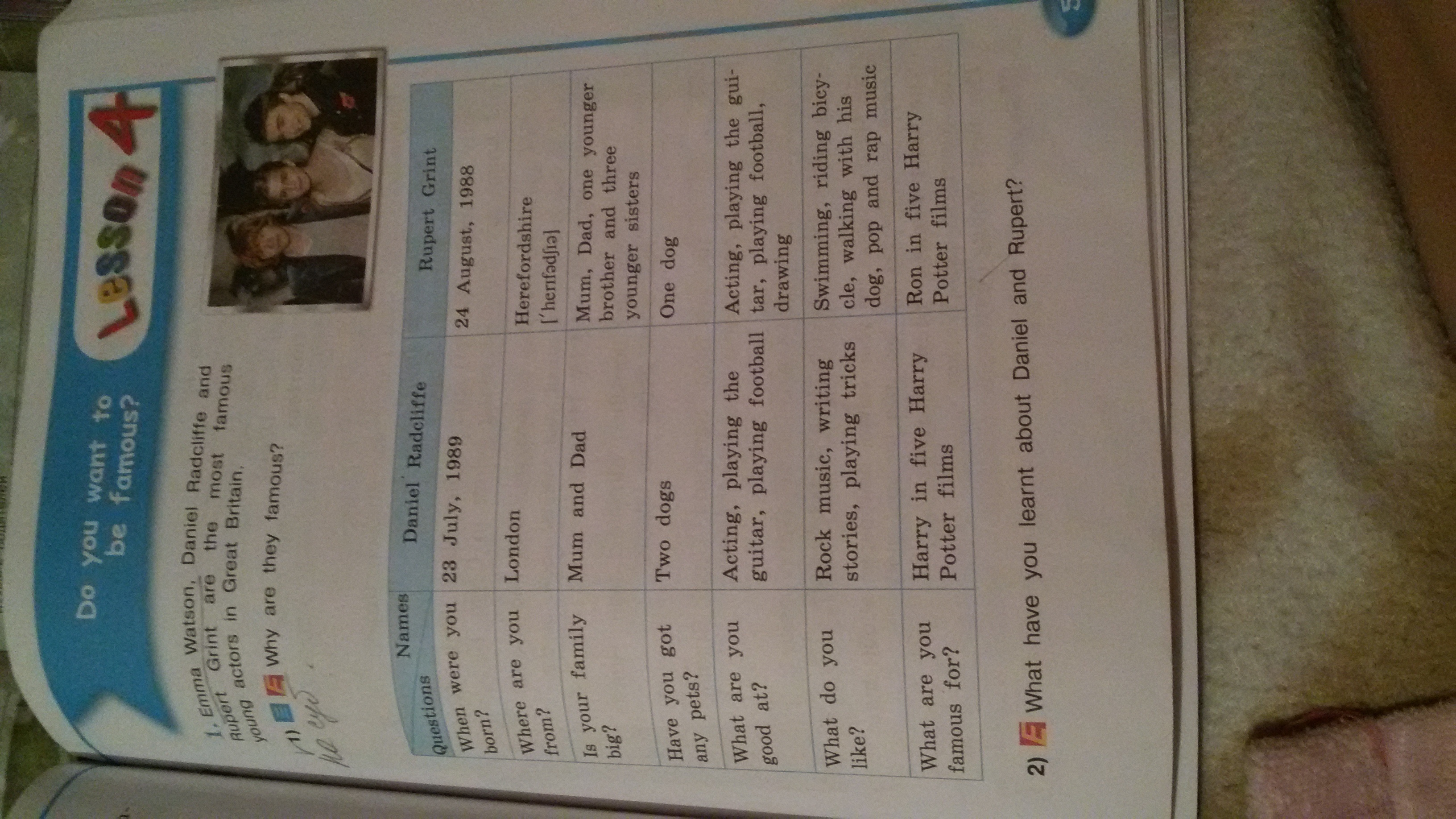 5 вопрос актировать играть на гитаре играть в футбол и рисовать 6 вопрос плавать кататься на велосипеде гулять с моей собакой поп и реп музыку 7 вопрос рон в 5 фильмах гари потер