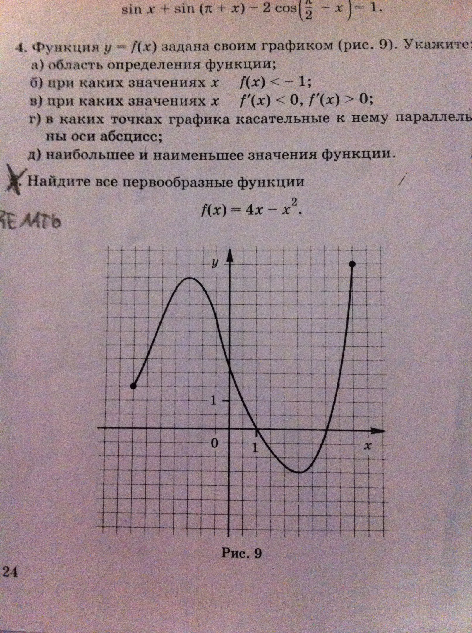 в) f(x)>0 при [-3,5;1] и [3,5;4,5]