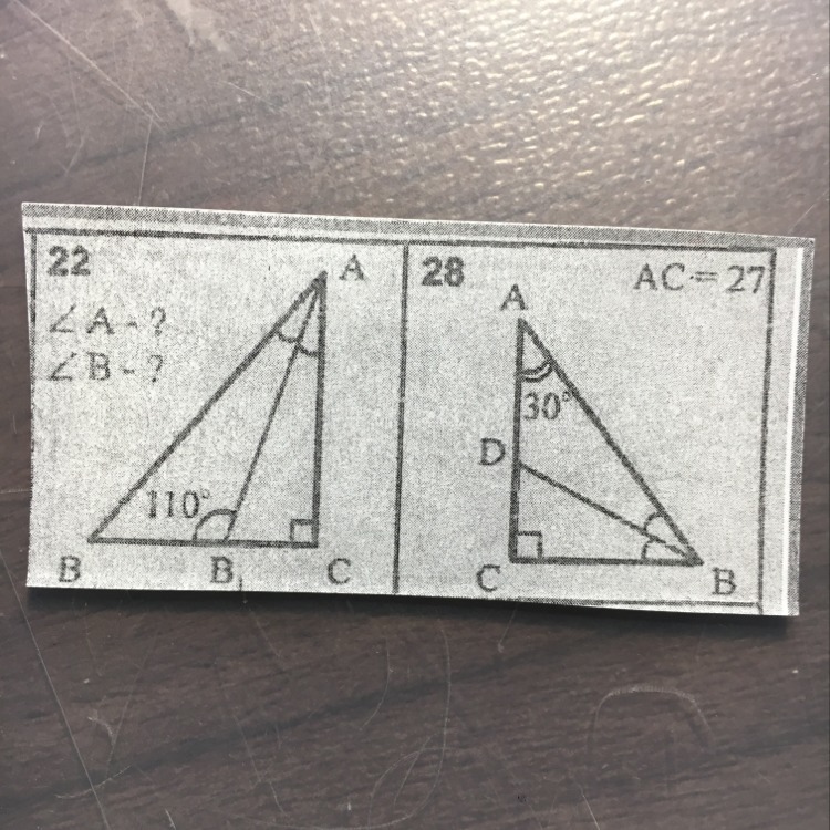 22. a =40;b=50 28. cbd =30; abd =30