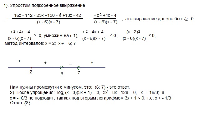использовано: определение арифметического квадратного корня, формула квадрата разности, метод интервалов; определение и свойства логарифма