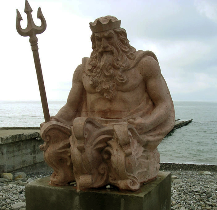На цій скульптурі ми бачимо Нептуна — бога моря. Дуже символічно що цей витвір мистецтва розташували біля водойми. На цій скульптурі ми бачимо тулуб царя води та його тризуб в його могутніх руках. Також автор показую нам його лице, з довгою, сивою бородою та довгим волосям на якому знаходиться неймовірної краси корона.