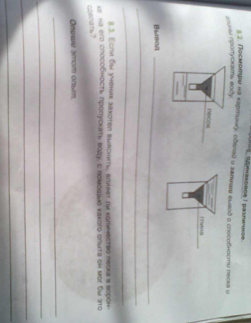 8.2 посмотри на картинку, сделай и запиши вывод о способности песка и глины пропускать воду.
