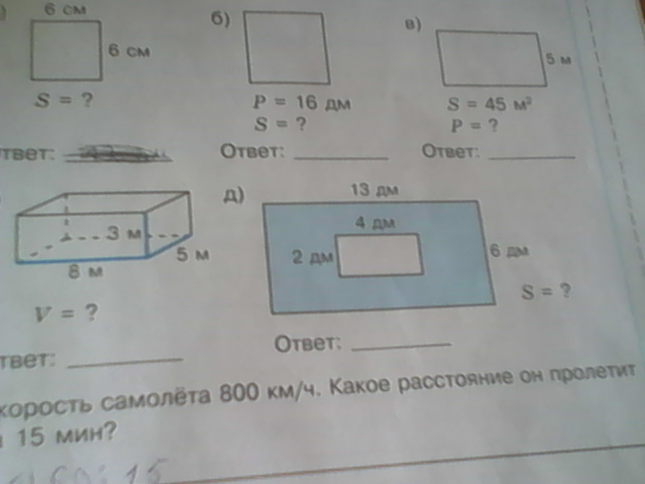 д) S = (13 * 6) - (2 * 4) = 78 - 8 = 70