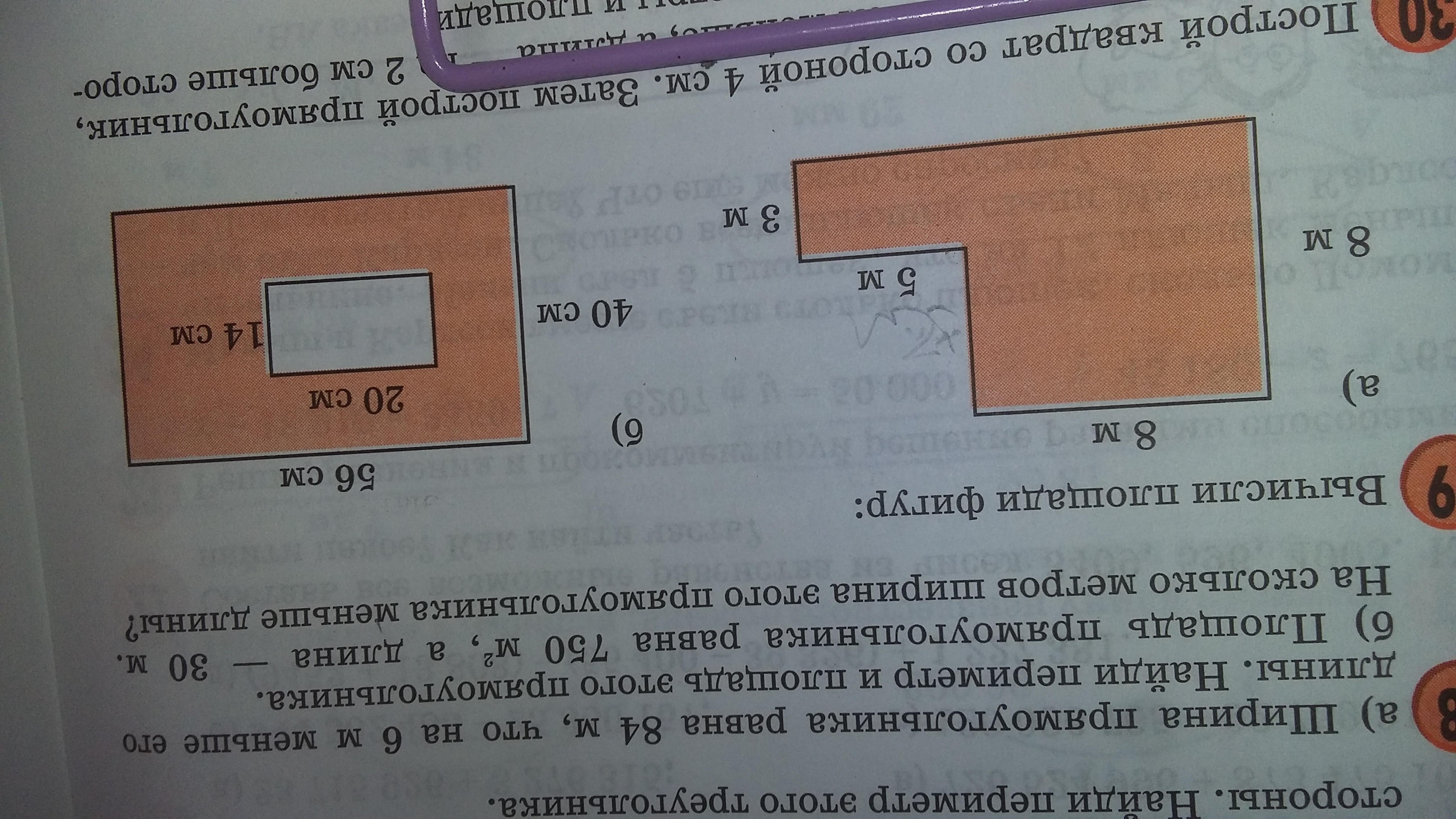 a) делим на две фигуры: квадрат со стороной 8м и прямоугольник со сторонами 5 и 3.