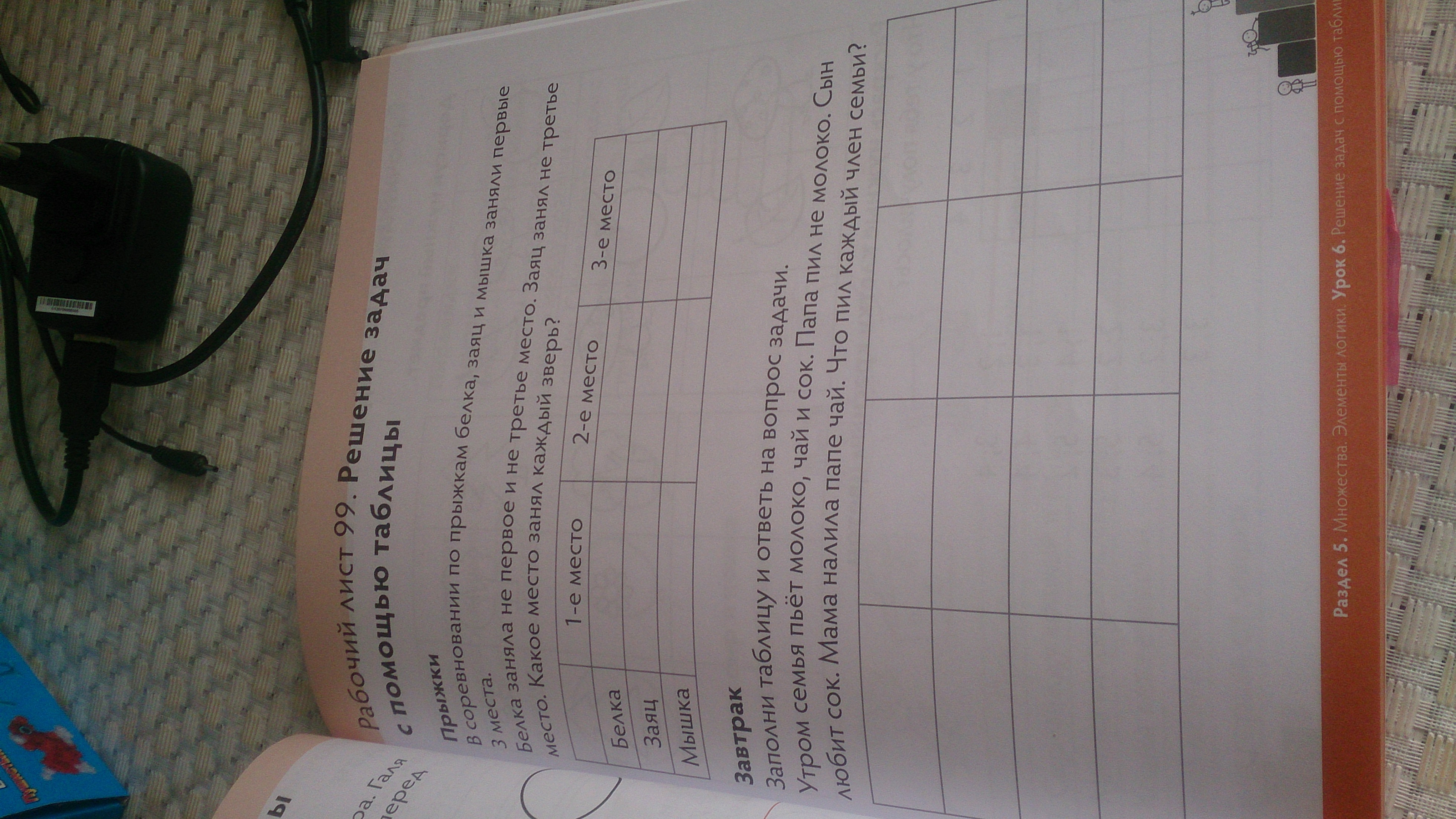 Мама пила молоко. (в таблице каждый член семьи по вертикали, напитки-по горизонтали)