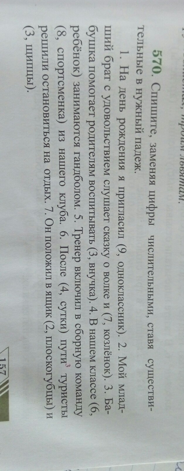 девять одноклассников,семи козлятах,трёх внучек,шесть ребят, восемь спортсменок,четырёх суток,две пары плоскогубцев, и три пары щипцов.