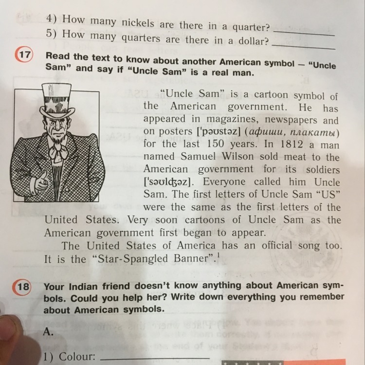 "Дядя Сэм"-это анимационный символ американского правительства.Он появлялся в журналах,новостях и на афишах последние 150 лет.В 1812 мужчина по имени Самуэль Вилсон продавал мясо солдатам в американском правительстве.Все звали его Дядя Сэм.