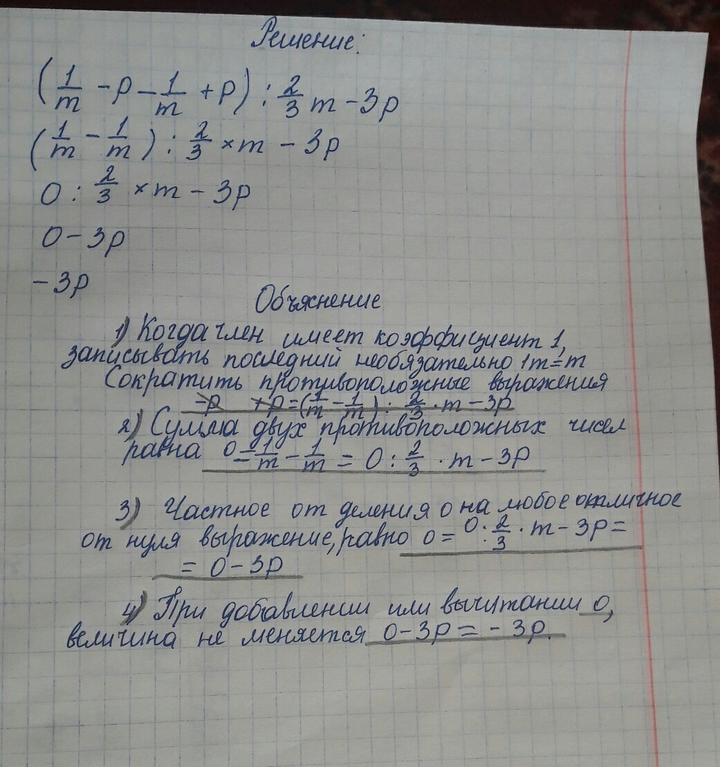 в первой скобке всё сокращается и получается ноль ,потом если в знаменателе ноль то дробь равна нулю из чего следует ,что весь пример равен -3р