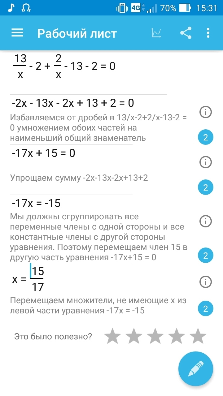 15х - 173 - 2х²+30х-52=0