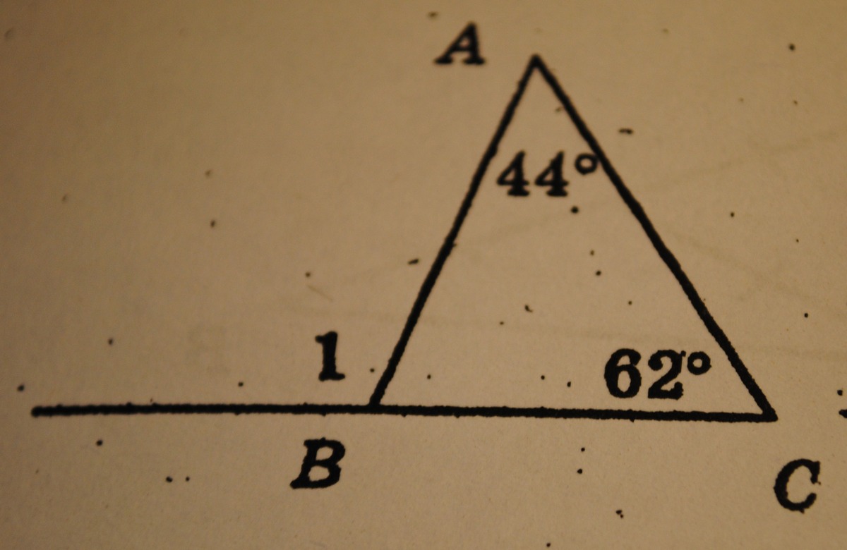 Угол В = углу 1 , т.к. смежные=>Угол 1=74