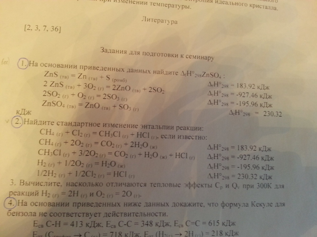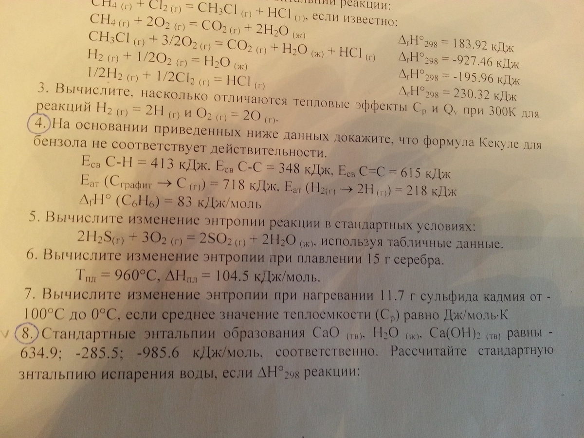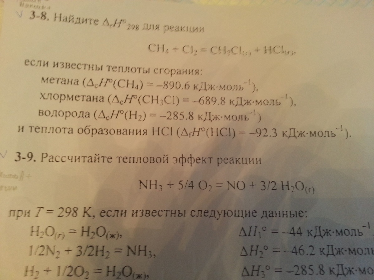 3.8 1) ∆H р-ии рассчит-ся как ∆H прод-в - ∆H реаг-в; т.е. для р-ии CH4 (x) + Cl2 = CH3Cl (y) + HCl, ∆Hr = (y+∆Hf HCl) - x (поскольку Cl2 - простое в-во, его ∆Hf = 0);