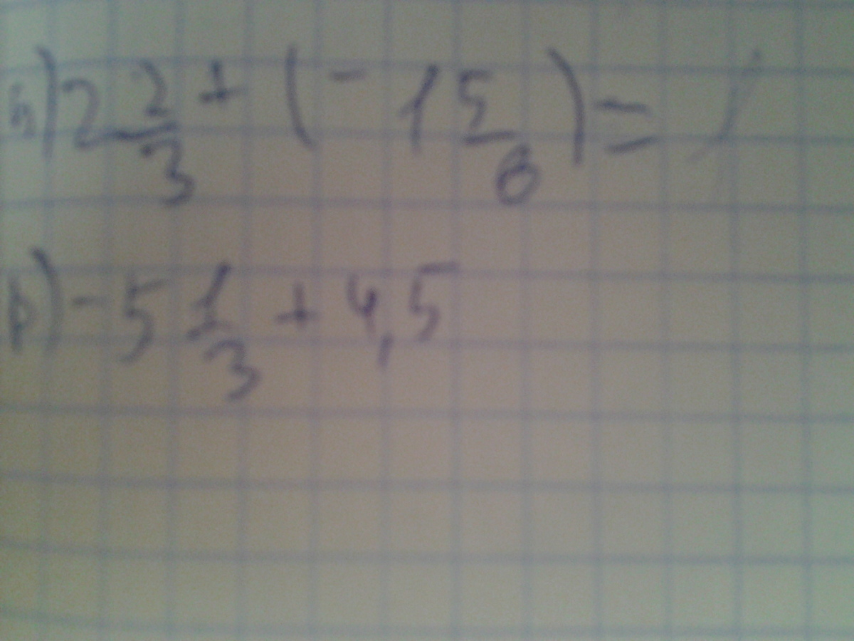 -5 1/3 + 4 1/2 = 16/3 + 9/2 = ( -32 + 27)/ 6 = - 5/6