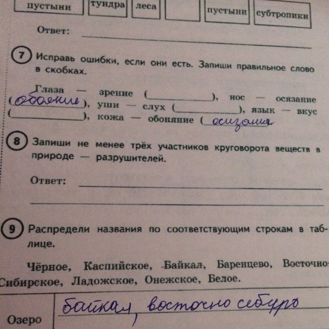Вода, кисень. Допиши до дев'ятого завдання Каспийское в колонку Озеро. Пробач! більше не можу згадать!