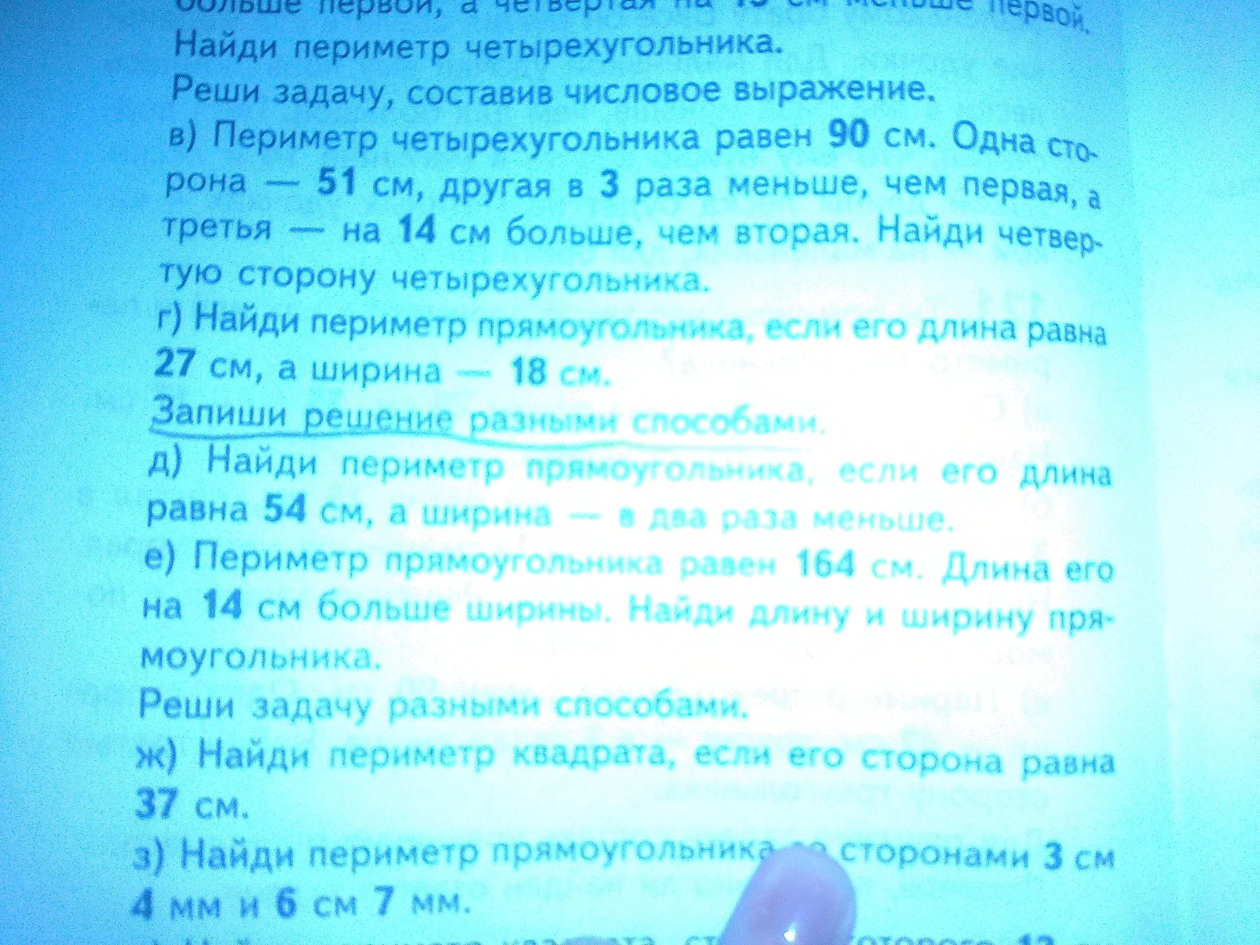 2)Периметр прямоугольника равен 164 см . Длина его на 14 см больше ширины. Найди длину и ширину прямоугольника .Решил задачу разными способами .