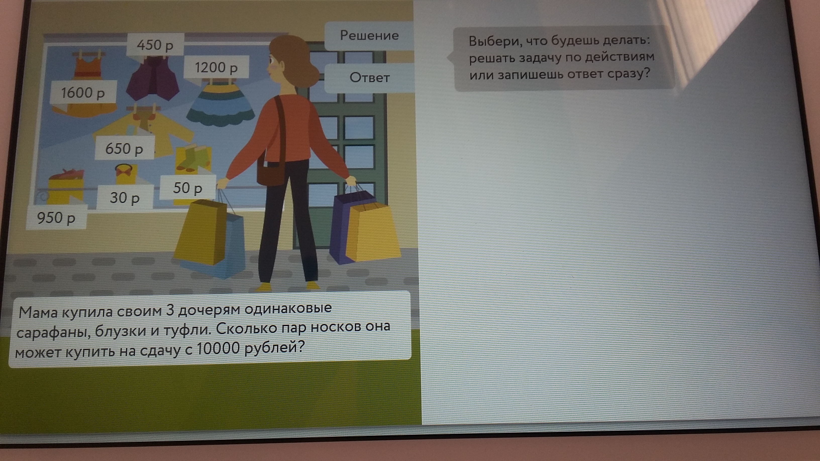 ответ:8 пар носков мама купит на сдачу с 10000рублей