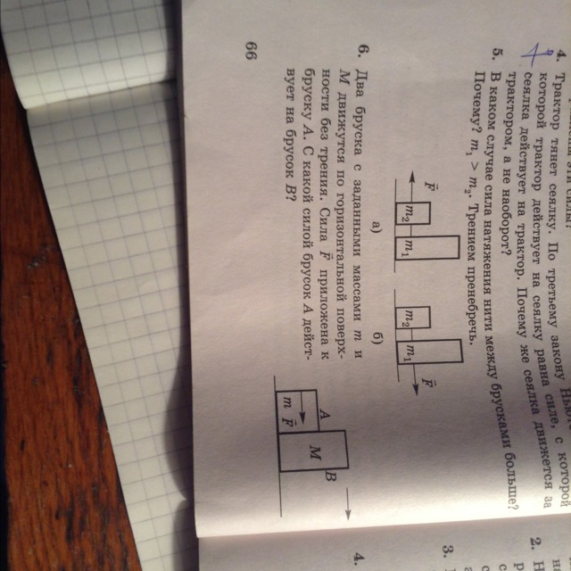 F=a( m + M )= am + aM = F1+F2 , где F1 -- сила отнесенная к бруску m, а F2 -- сила действующая на брусок М. F2= F-F1= F - ma