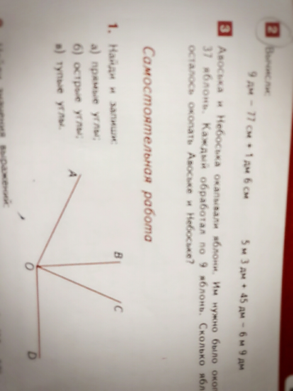 Прямой угол BOD и СОА, острый угол BOC и COD и BOA, тупой угол DOA