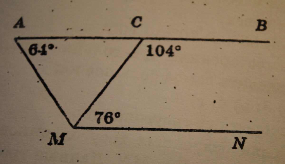 угол АМС=180-(64+76)=40 (градусов)-по теореме о сумме углов треугольника