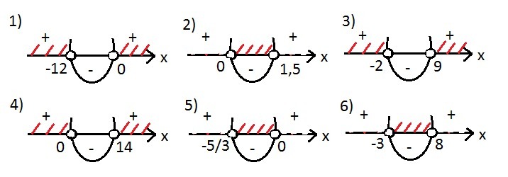 Ветви параболы направлены вверх, значит решением являются промежутки: