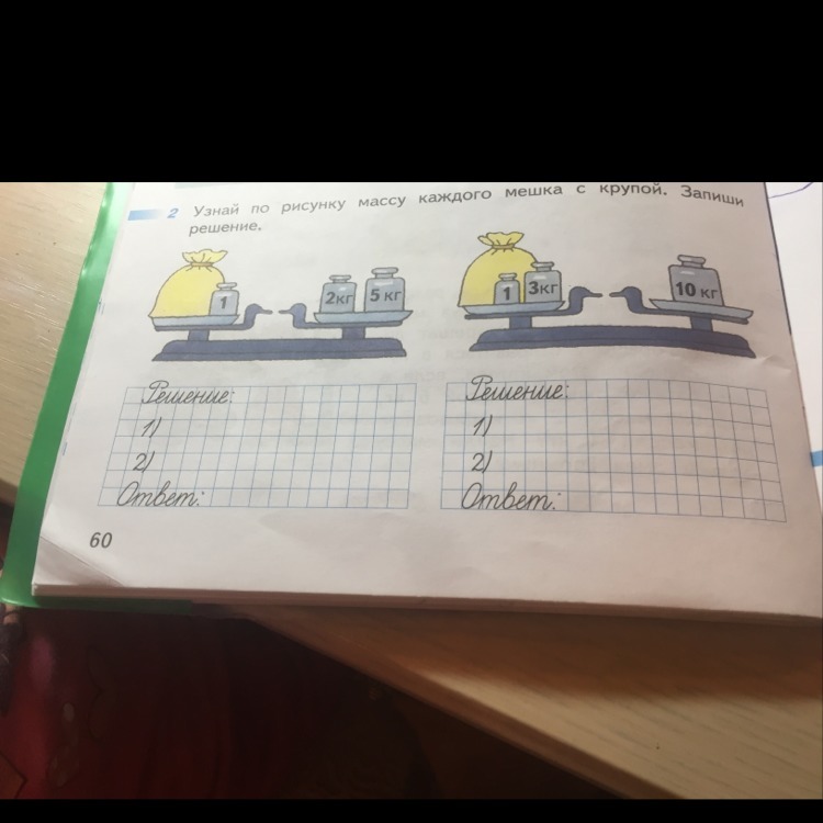 1) 1+3=4 (кг)- масса гирь на чаше с мешком