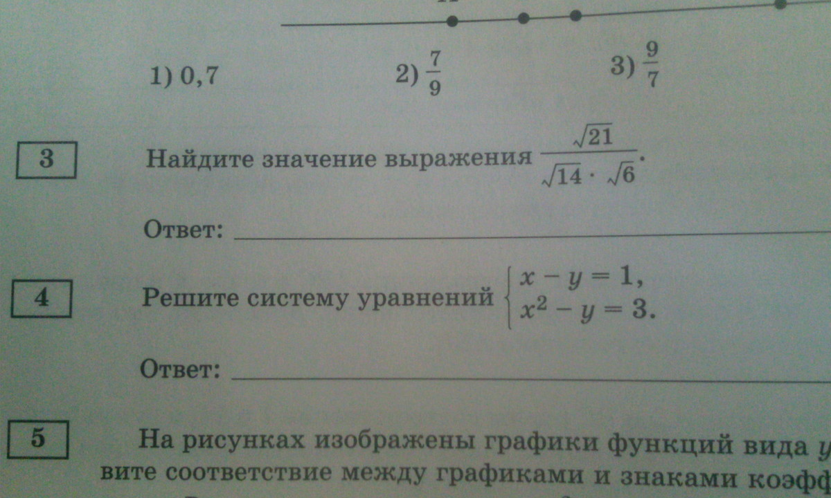 №3 Корень из 21 : корень из 14 х 6 = корень из 21 : корень из 84 = корень из 21/84 = корень из 1/4 = 1/2