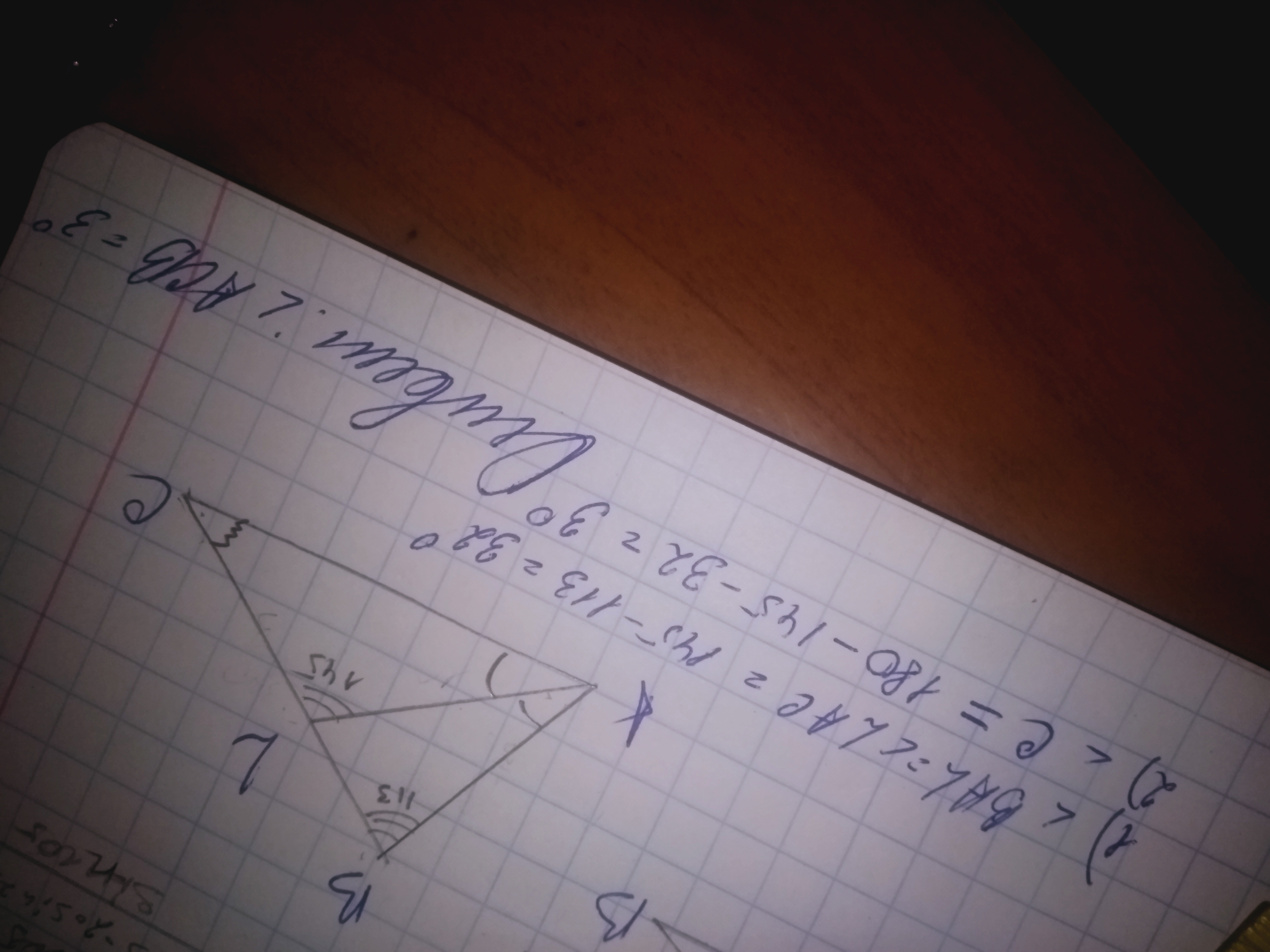 1) Рассмотрим треугольник ABL. Внешний угол равен сумме двух других не смежных с ним. Значит угол ВАL равен 145-113=32.