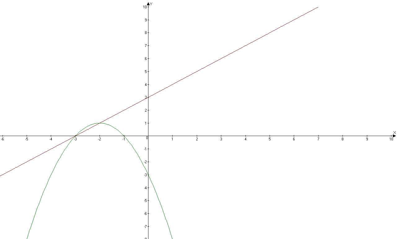 2. Найдём точки пересечения параболы и прямой х-у+3=0, решив систему уравнений методом подстановки: y=-(x+2)^2+1 и х-у+3=0; х+(x+2)^2-1+3=0; х+x^2+4х+4+2=0;