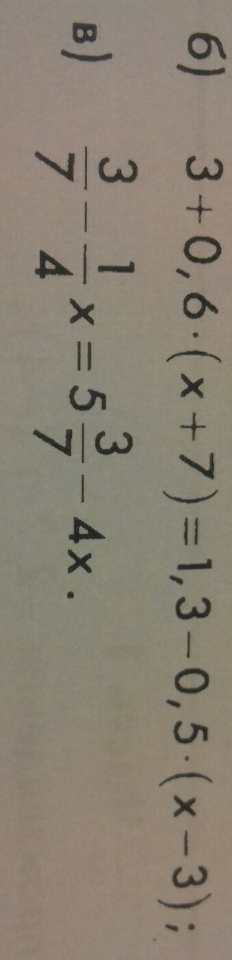 б) 3+0,6х+4,2=1,3-0,5х+1,5