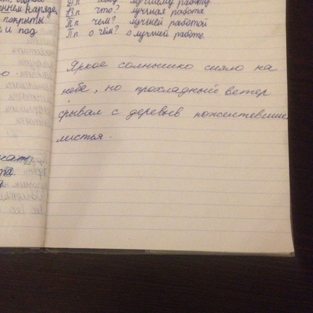Яркое солнышко,сияло на небе, солнышко на небе,прохладный ветер,срывал с деревьев,пожелтевшие листья.
