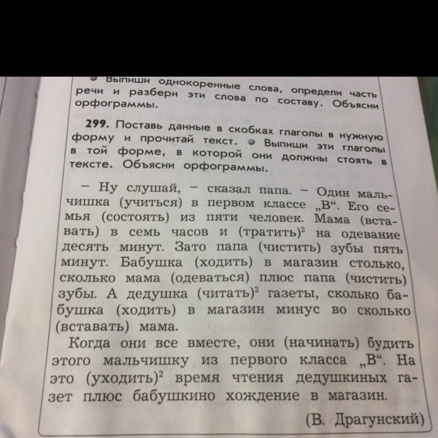 Учится, состоит, встает, тратит, чистит, ходит, одевается, чистит, читает, ходит, встает, начинают, уходит.