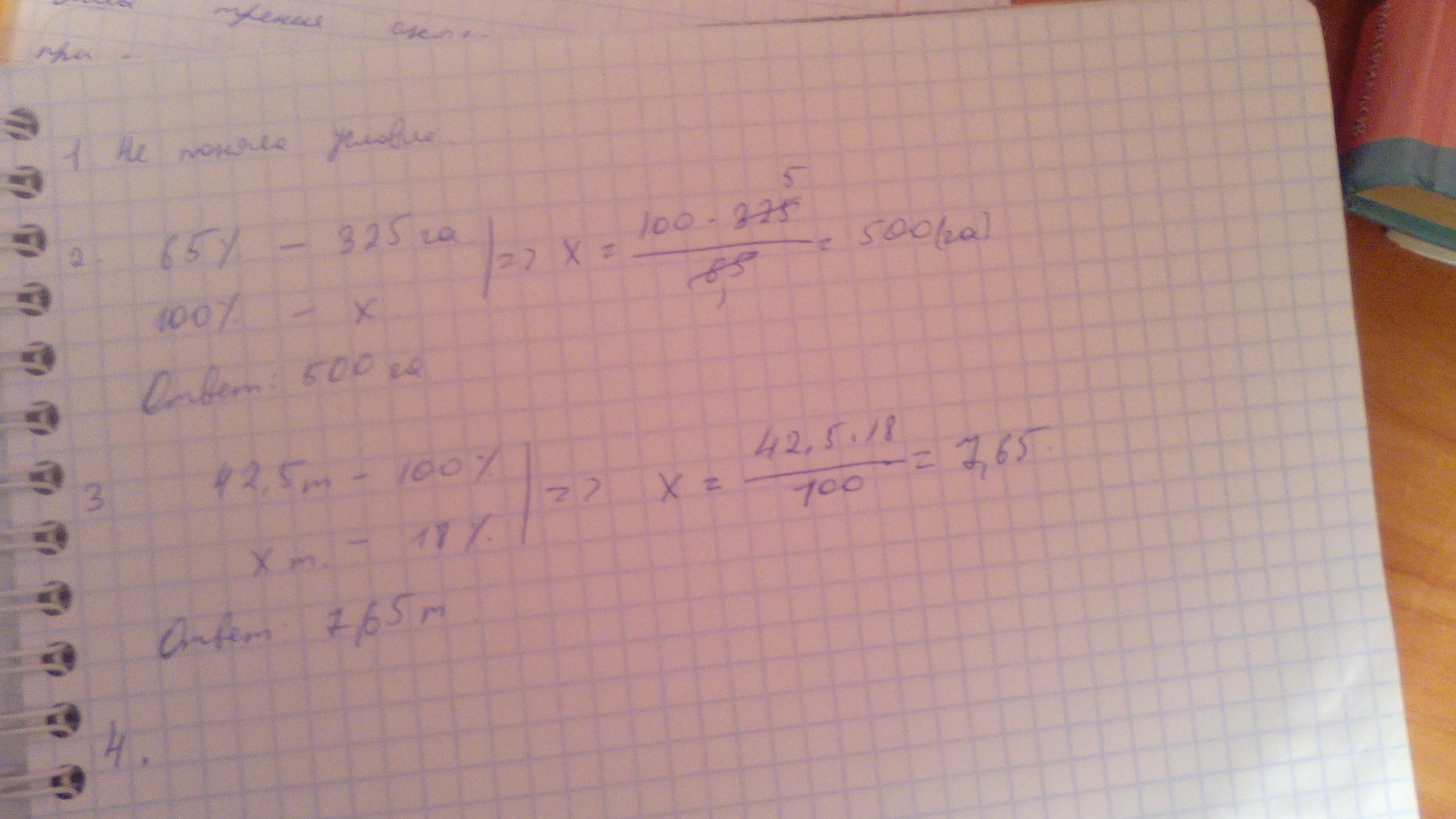 2.Засеяли 65% поля, что составило 325 га. Найдите площадь всего поля.