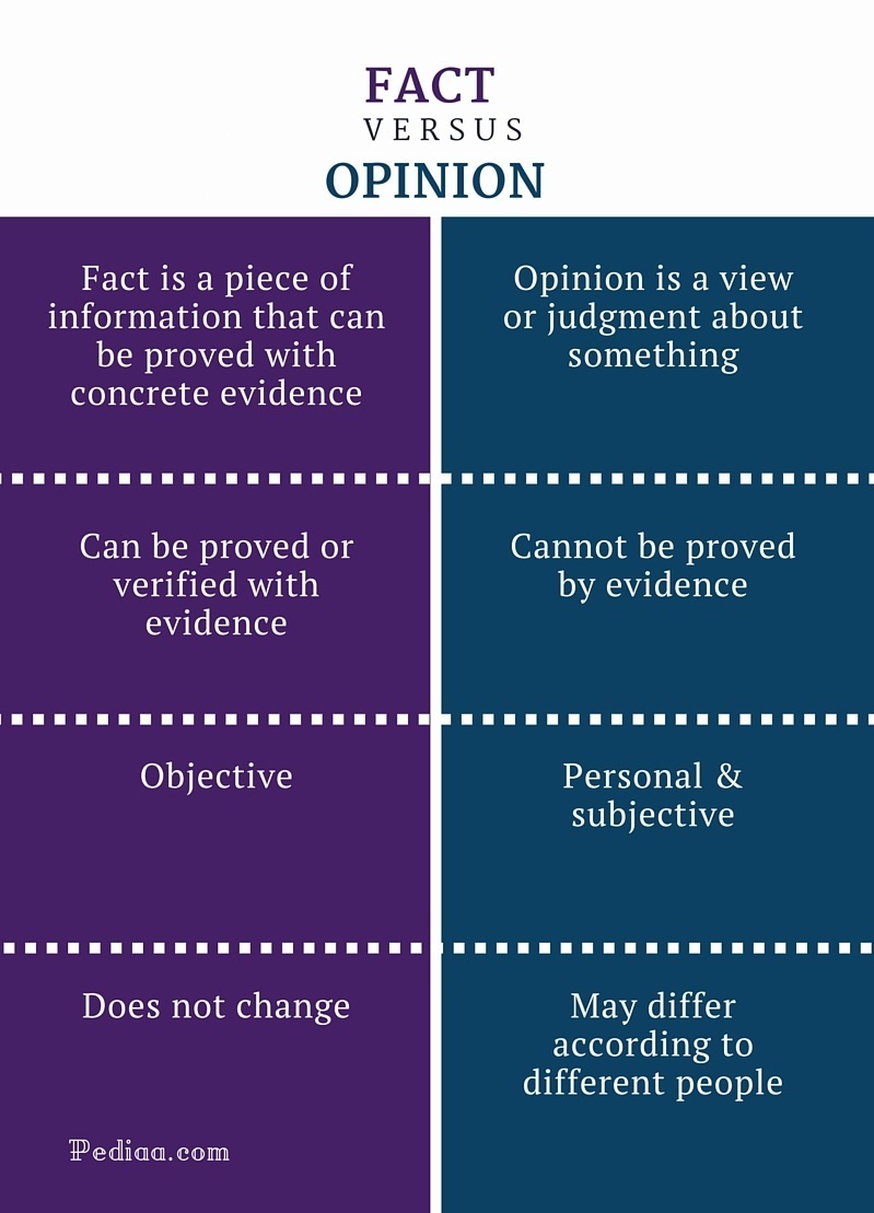 2. Факты могут быть подтверждены доказательствами // Мнения не могут быть подтверждены доказательствами;