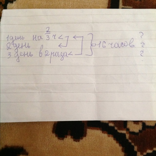 3-ий день (Х-2/3Х) : 2= 1/3Х : 2 = 1/6Х