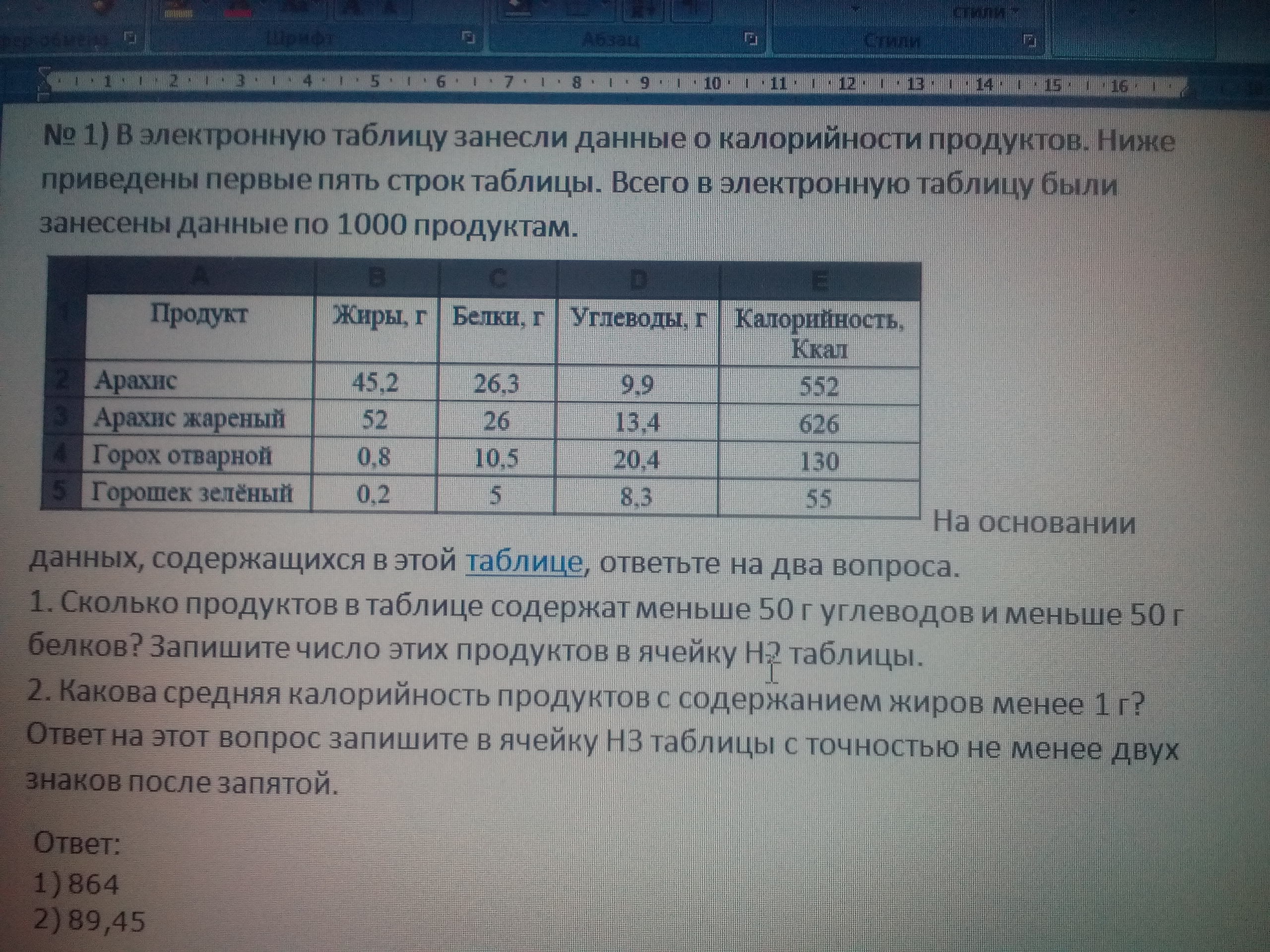 2. Таких продуктов всего 2: горох отварной и горошек зелёный. Их средняя калорийность считается как среднее арифметическое: (130 + 55) / 2 = 185 / 2 = 92,5 ккал.