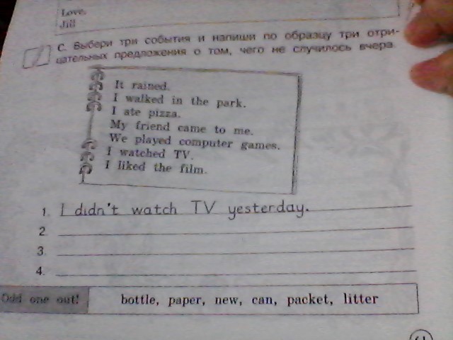 выбери три события и напиши по обрасцу три отрицательных предложения о том . чего не случилась вчера.