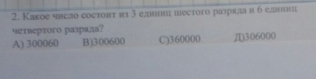 Правильный ответ (д) Потому что 306000 Там шестой разряд это стотысячные , а четвертый разряд это тысячные.