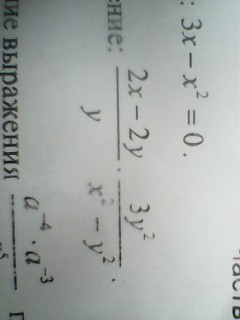 = 2(x-y)/y × 3y^2/(x-y)(x+y) все это под черту дроби, потом делишь и в результате получается 2×3y/x+y; или 6y/x+y