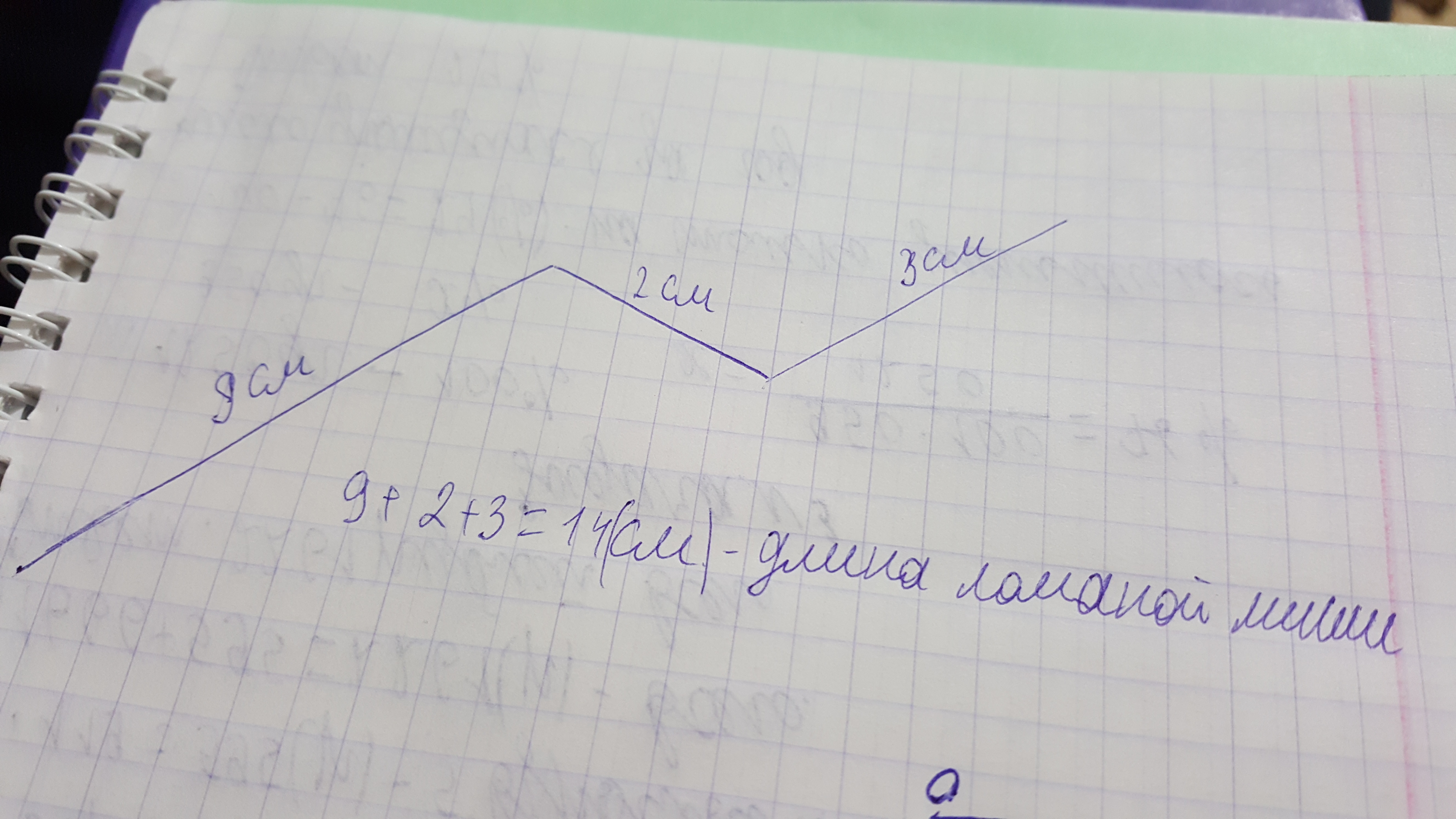 Начерти ломаную линию из трех звеньев Длина первого звена 9 см длина второго звена 2 см длина третьего звена 3 см Найди длину ломаной линии