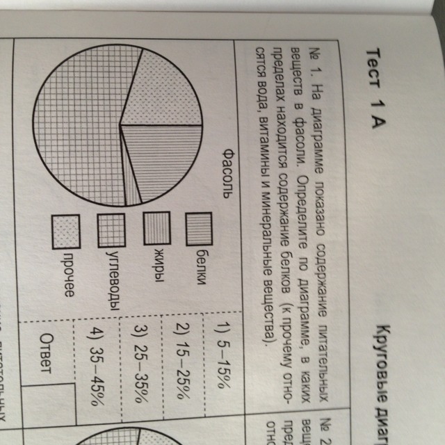 Так как белок занимает чуть меньше четверти круга, то ответ 15-25%.
