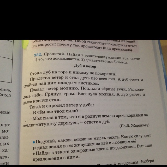 Прочитай. Найти в тексте-рассуждение три части : 1) то , что доказывается ; 2) доказательство ; 3)Вывод