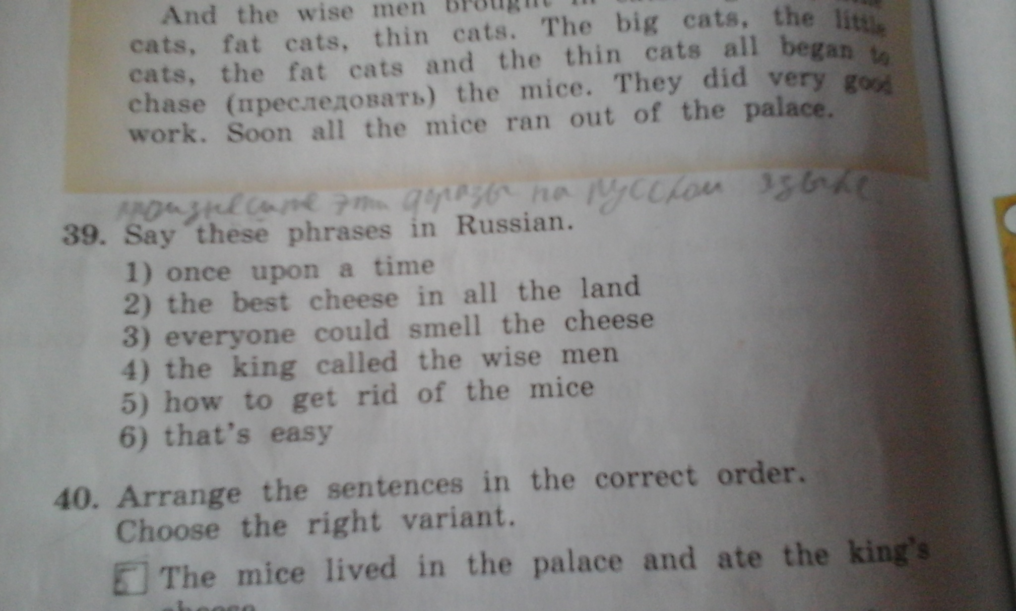 онс виз фресес ин Рашан 1 ) онс апон э тайм 2 ) зэ бэст чис ин ол зэ лэнд 3 ) еври ван каулд смэл зэ чиз 4 ) зэ кинг колт зе вис мен 5 ) хау ту гет райд оф зэ майс 6 ) зэтс изи