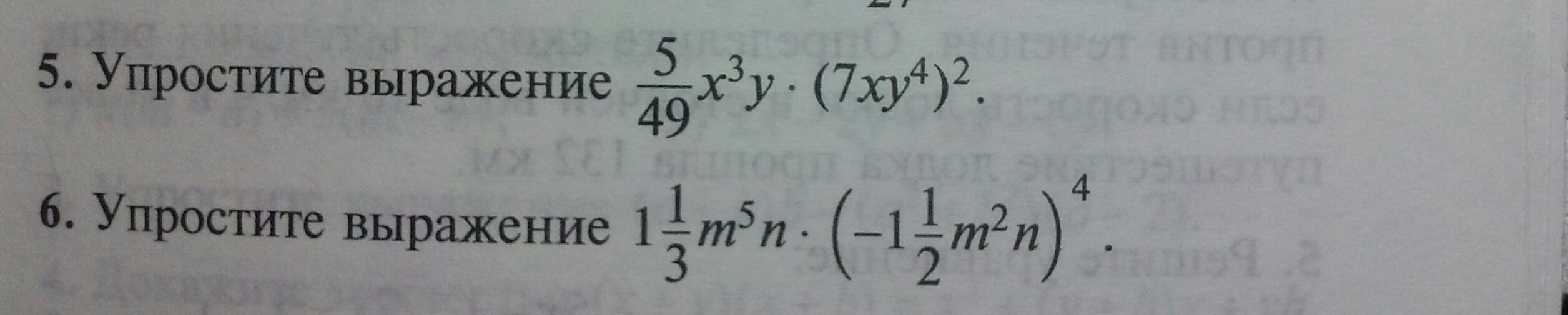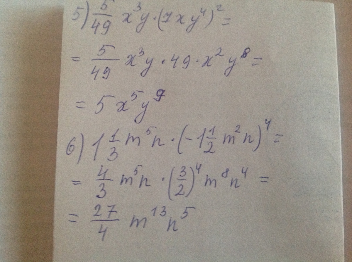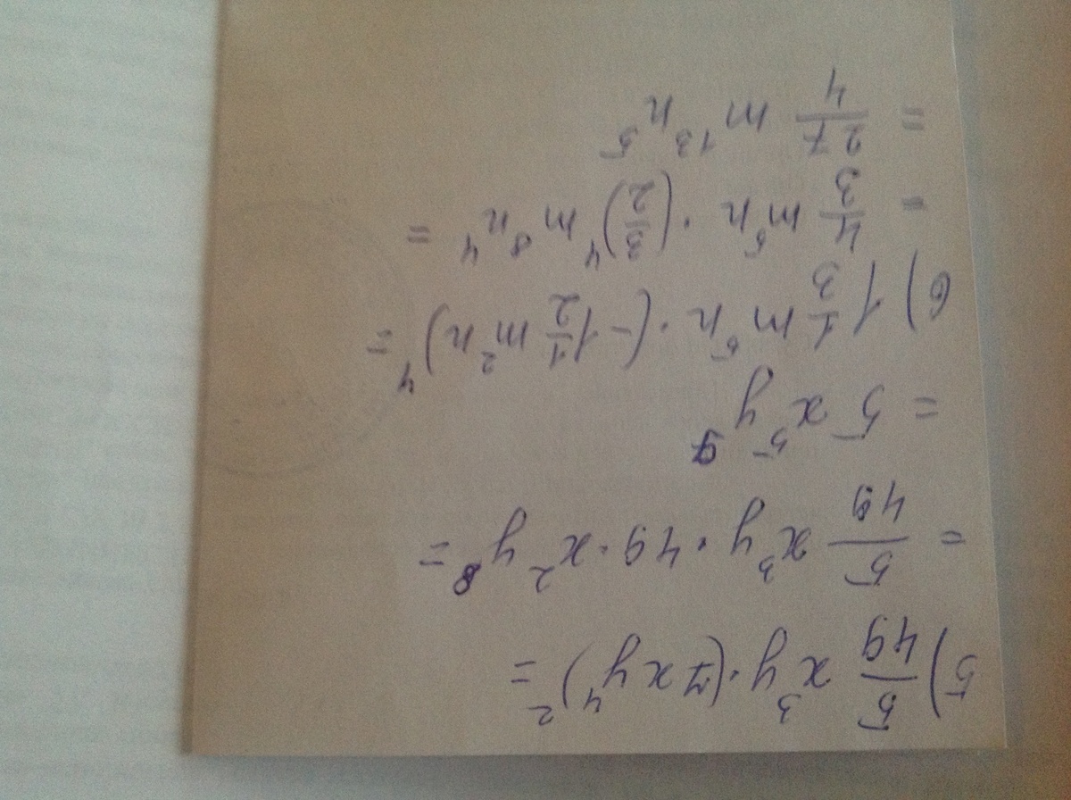 5) (5*x^3*y)/49 * 49*x^2*y^8= (5*x^3*y*49*x^2*y^8)/49 = 5*x^5*y^9