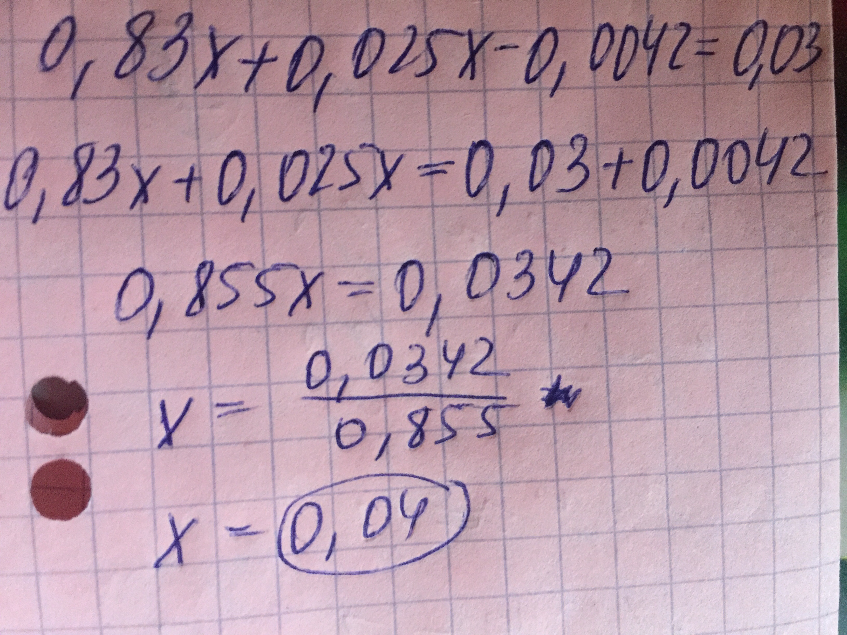 0.83x+0.025x-0.0042=0.03 х= 0.04