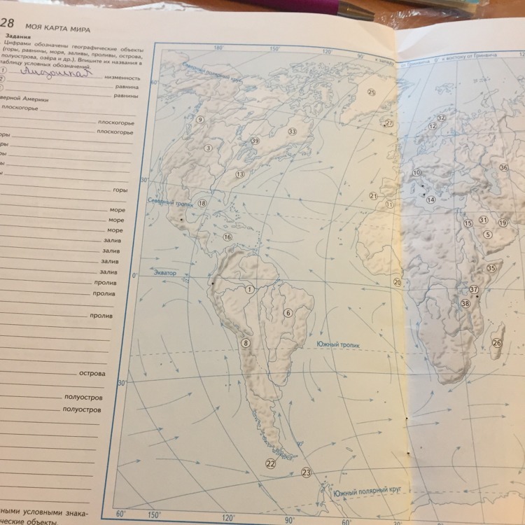 Цифры обозначают место которое ты должна обозначить, что бы не было затруднений можно посмотреть в атлас или другие географические принадлежности.