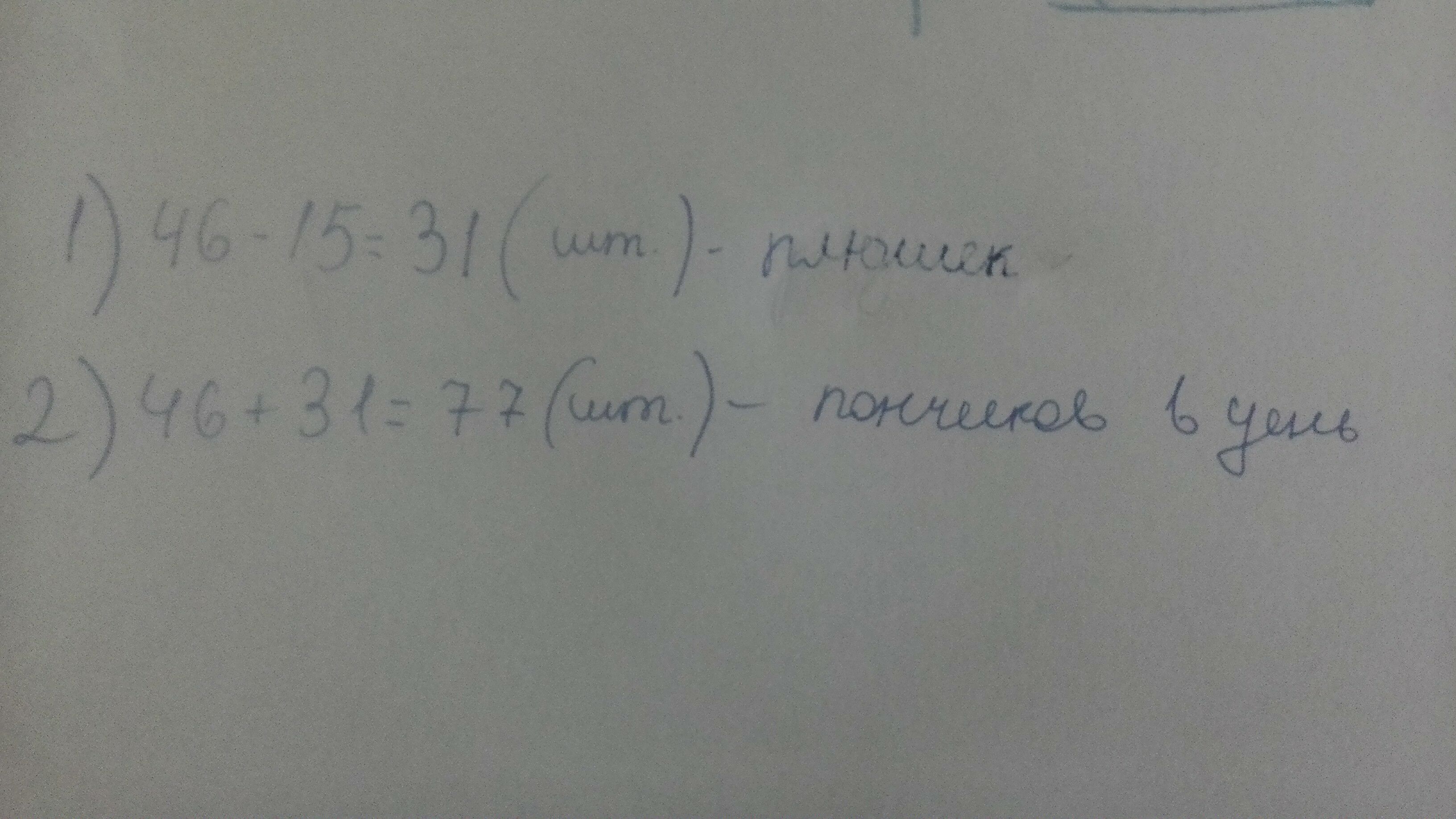 1) 46-15= 31 плюшку выпекали за день.