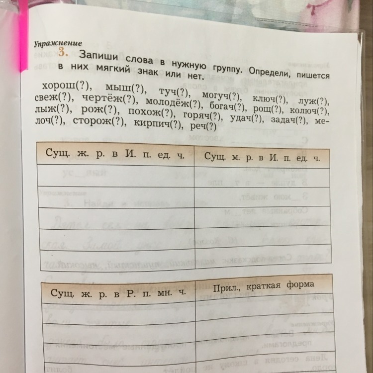 1) мышь, молодёжь, рожь, мелочь, речь2) ключ, чертёж, богач, сторож, кирпич3) туч, луж, лыж, удач, рощ, задач4) хорош, могуч, свеж, колюч, похож, горяч