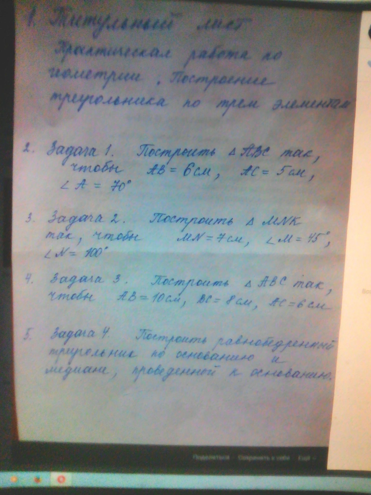 Задачи на построение .Работа с линейкой и циркулем(желательно,если можно фото с решением)