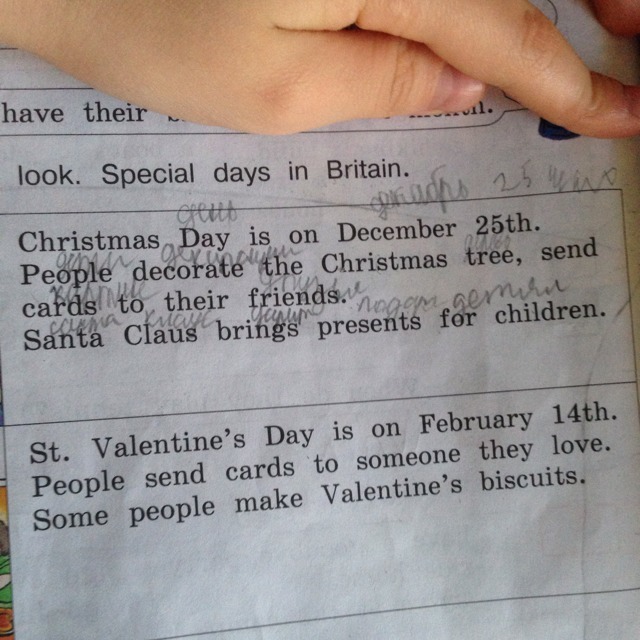 День Святого Валентина начинается 14 февраля. Люди отправляют валентинки тому, кого любят. А некоторые люди делают печенья-валентинки.