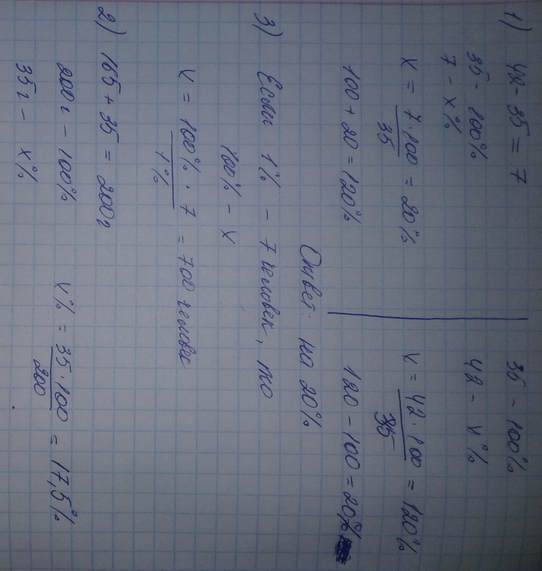 1) при плане в 35 дет. рабочий сделал 42 дет. на сколько % он перевыполнил норму.