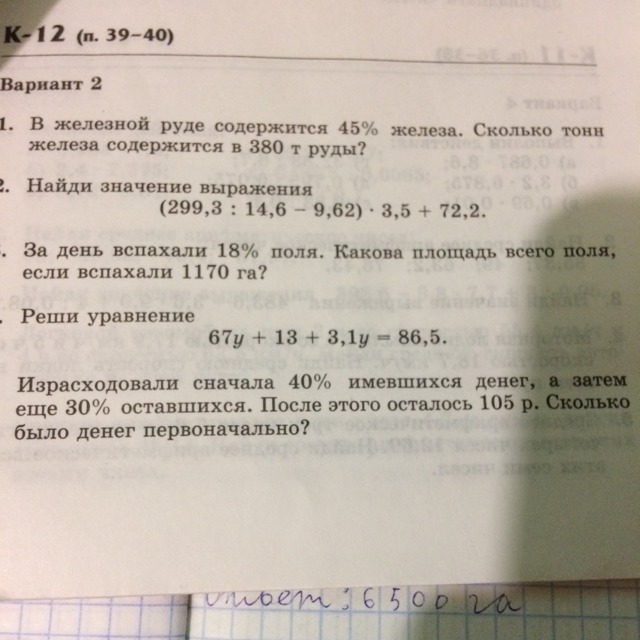 0,4x+(x-0,4x)0,3+105=x
